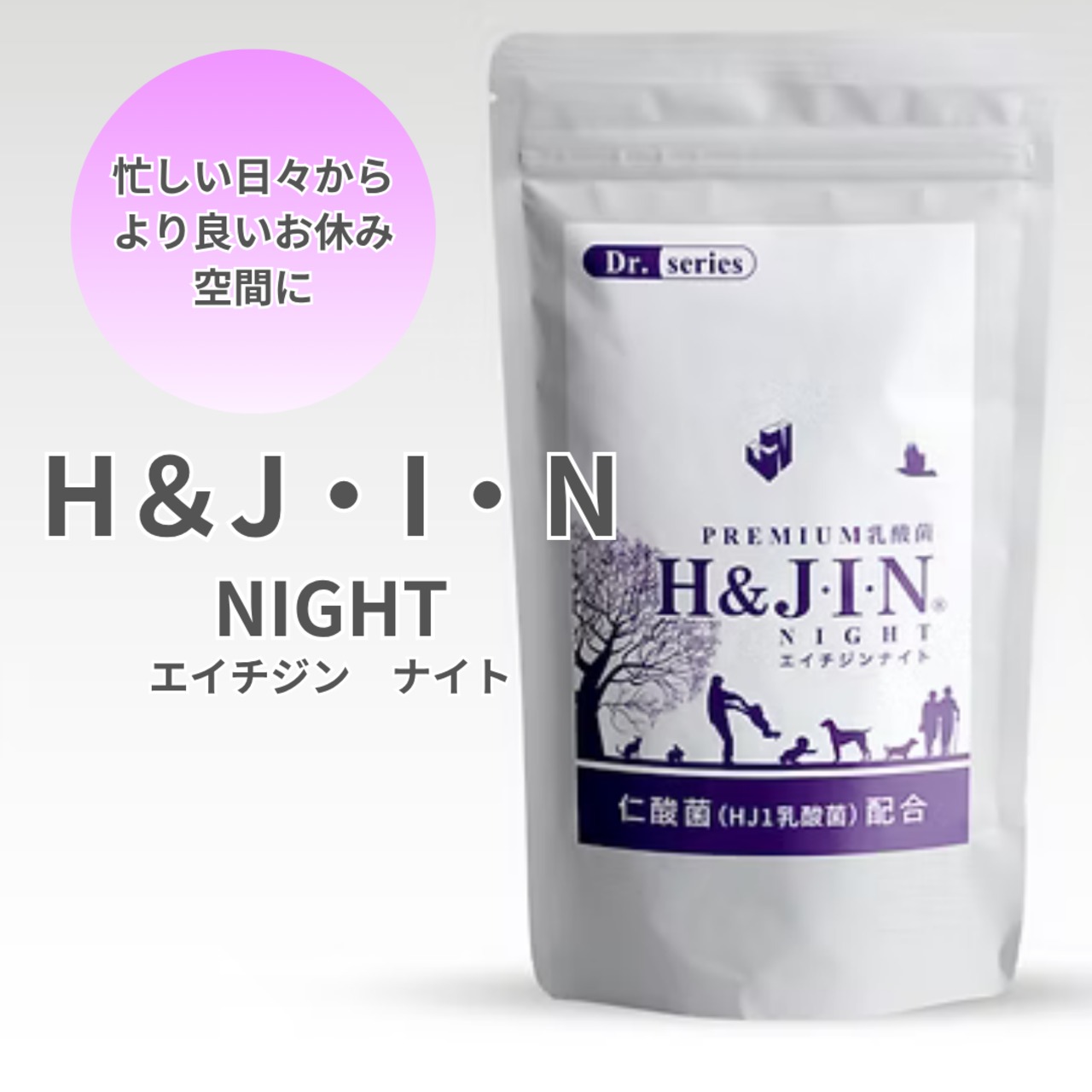 ・乳酸菌エイチジンナイトはHJ1乳酸菌に加え、GABAやベネトロンなど選び抜かれた成分を最高のバランスで配合した特別な乳酸菌サプリメント。